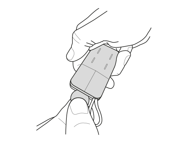 1. Halten Sie das Gehäuseoberteil mit Daumen und Zeigefinger unter die untere Taste fest.